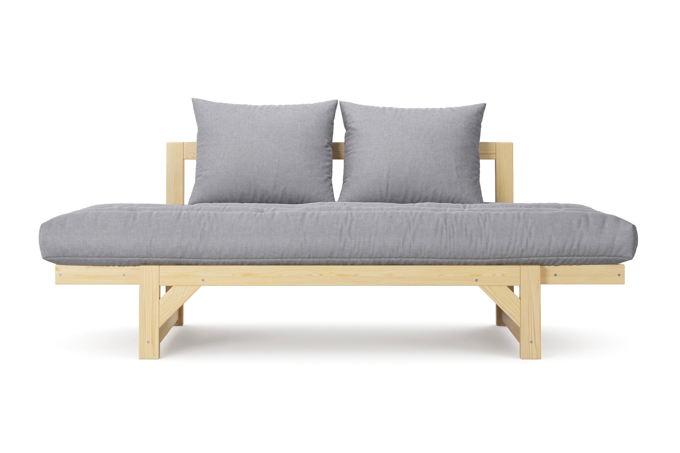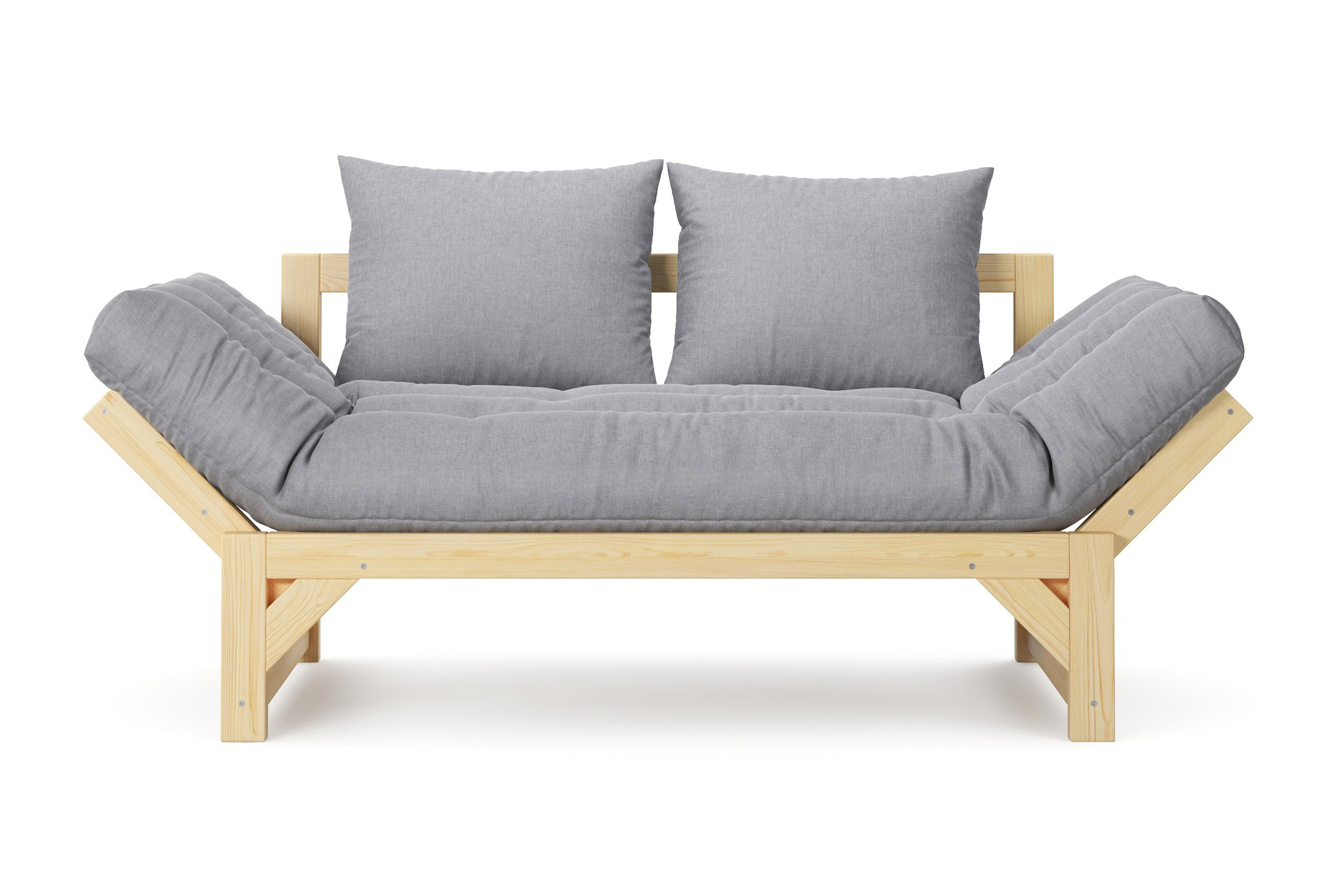 Максимальная нагрузка — 220 кг. Ширина деревянной спинки 130 см. Приспинные подушки, представленные на фото, входят в комплект. Декоративные приобретаются отдельно. Диван продается без лакокрасочного покрытия, под самостоятельную покраску. Высота сиденья без матраса - 31 см, с матрасом 46 см.